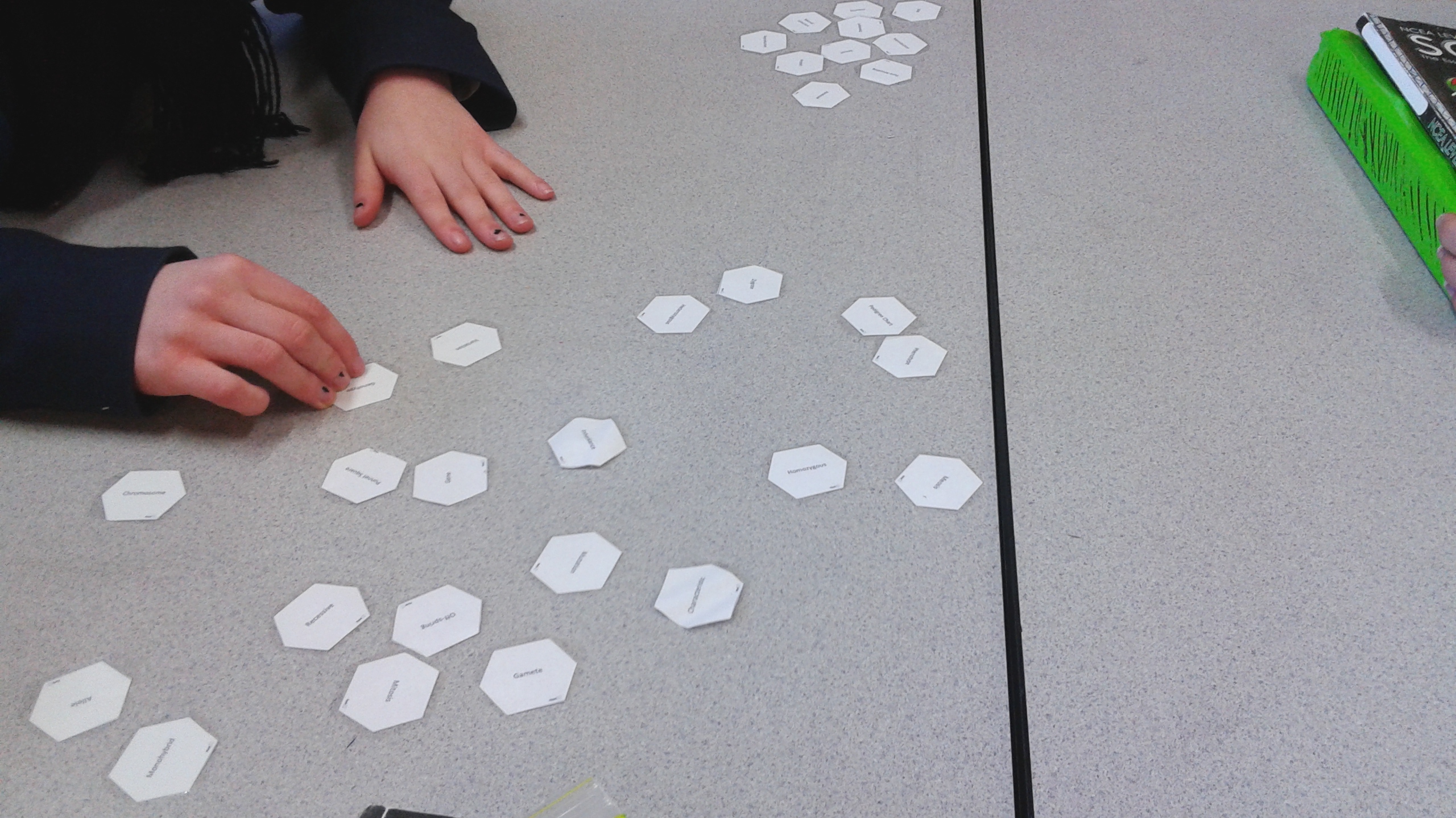 Today I had my first go explicitly using Solo taxonomy. I used the hexagons (generated by the free ap here) as a starter for my yr 11 Genetics topic. It worked really well, and I found my students where already familiar with a lot of the vocab, and the discussion around which groupings to make meant they helped each other remember. So it was a great success, and I will bring them out in two weeks and use them to help the students see how much progress they are making.