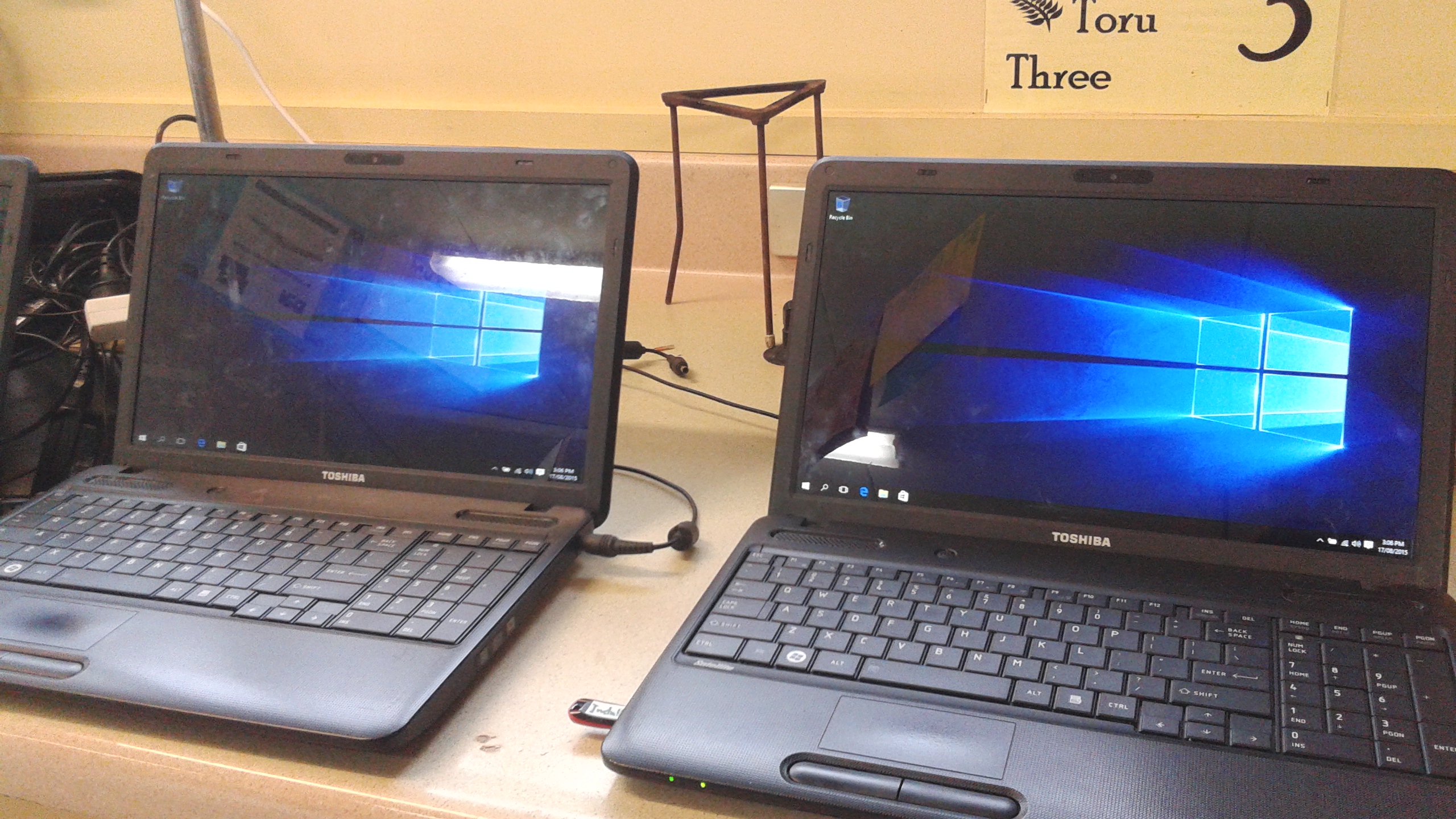 Monday and Tuesday this week were big days – I was updating our ‘old’ (3 years) Toshiba cows (computers on wheels – they were on trolleys so we could move them from classroom to classroom) to windows 10. The process has gone remarkably smoothly due to the lovely list of instructions I got from my IT admin – just boot the laptops from a flashdrive and away they have gone. The update to windows 10 (from windows 7) has taken between 30-40 minutes per device, and then an additional time for adding on Office, printer drivers etc.