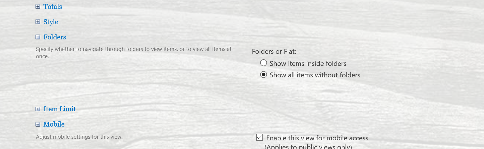 Or, all you need to do is scroll to the folders button on the modify view option, and click show all items without folders