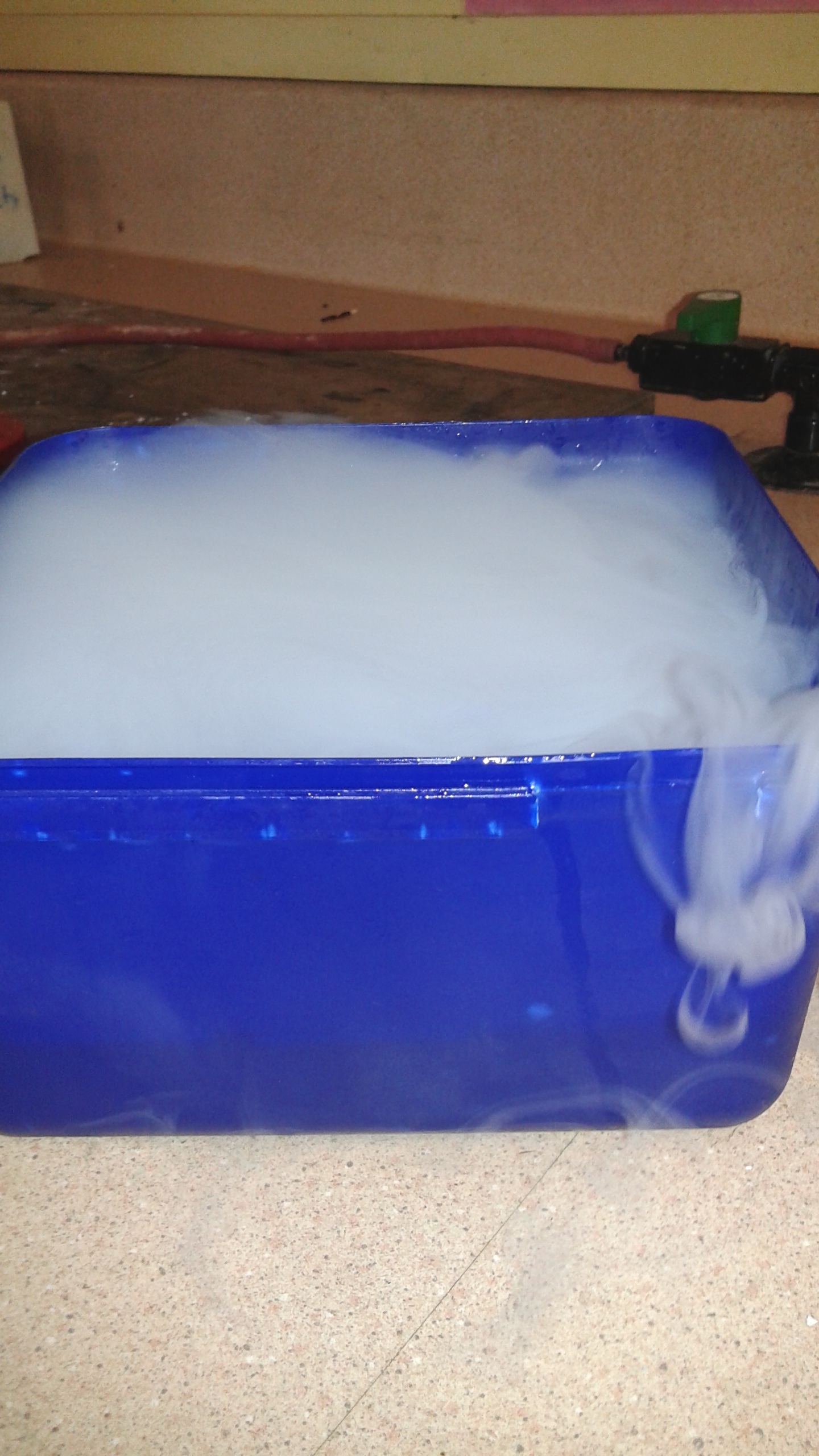 just the cauldron look is memorising. Swishing your hands through the cold gas is creepy, a year 10 asked if this was what a ghost would feel like. The container eventually froze to the bench, which lead to a discussion around condensation and water vapour in the air.