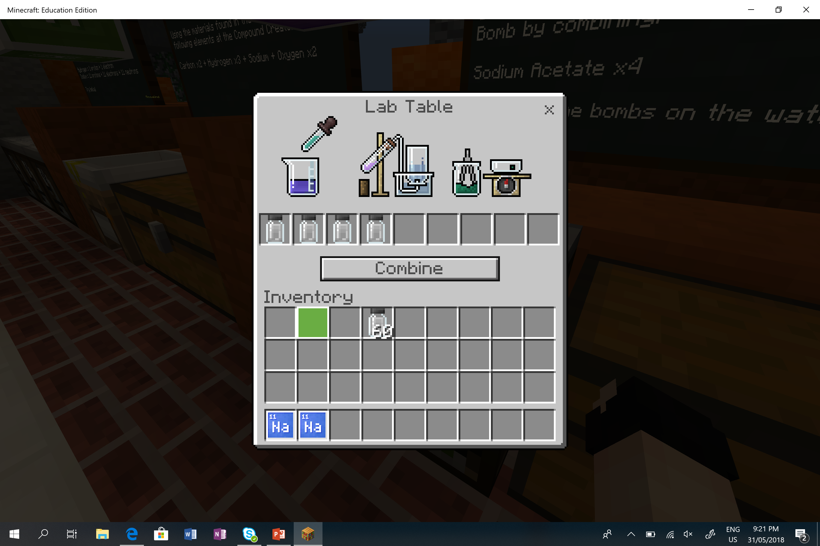 Lighting fires with the Chemistry Add in for MinecraftEDU