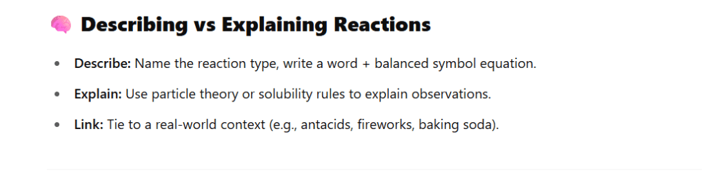 | Explain reactions | Go beyond what happens—explain why it happens. |