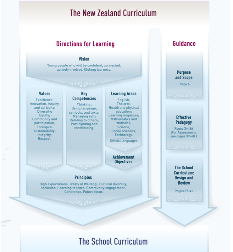 And going back to the 2007 NZC, there was this graphic showing how all the curriculum topics feed into a bigger whole – I often relate to the Science one that students should know stuff about Science so that they can participate in a society in which Science plays a significant role…