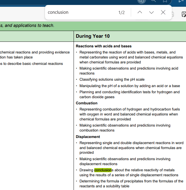 So, in conclusion, ‘conclusions’ are a big part of Science. All the high level science papers have a set format, abstract, intro, method, results, discussion, conclusion….. conclusion is mentioned twice in the draft doc, once in yr 9 and once in yr 10. How can students build proficiency if it is ‘taught’ twice in the teaching sequence? My conclusion is that they can’t.