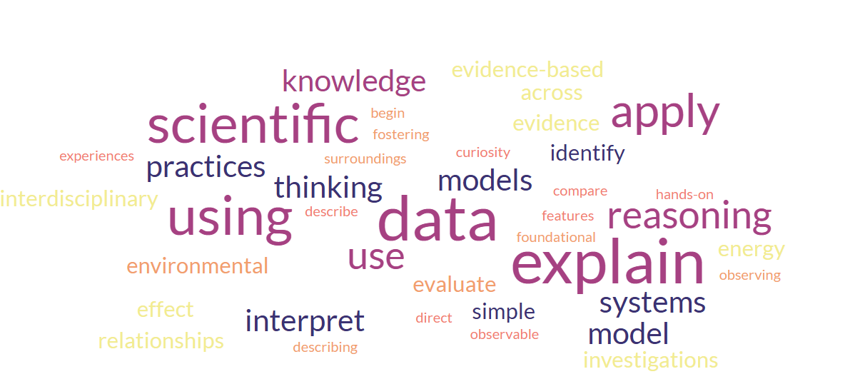 So, maybe I should look for the practices. The introduction has many verbs, as I talked about last week – I did a word cloud for fun. I copied the middle 4 paragraphs of the intro, removed teachers and students and ‘to’ and this was the top 40 words